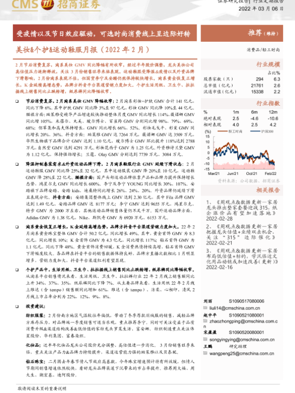 【海通证券】【20220306】轻工时尚行业美妆&个护&运动鞋服月报(2022年2月)-18页