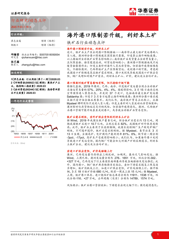 【华泰证券】【20200318】20200318-华泰证券-铁矿石行业动态点评:海外港口限制若升级,利好本土矿-5页