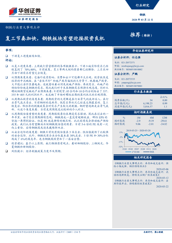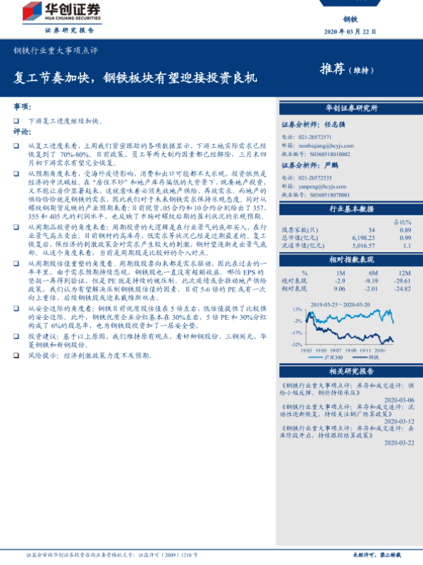 【华创证券】【20200322】钢铁行业重大事项点评:复工节奏加快,钢铁板块有望迎接投资良机-4页