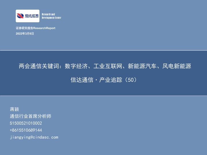 【信达证券】【20220306】通信行业·产业追踪(50):两会通信关键词,数字经济、工业互联网、新能源汽车、风电新能源-41页