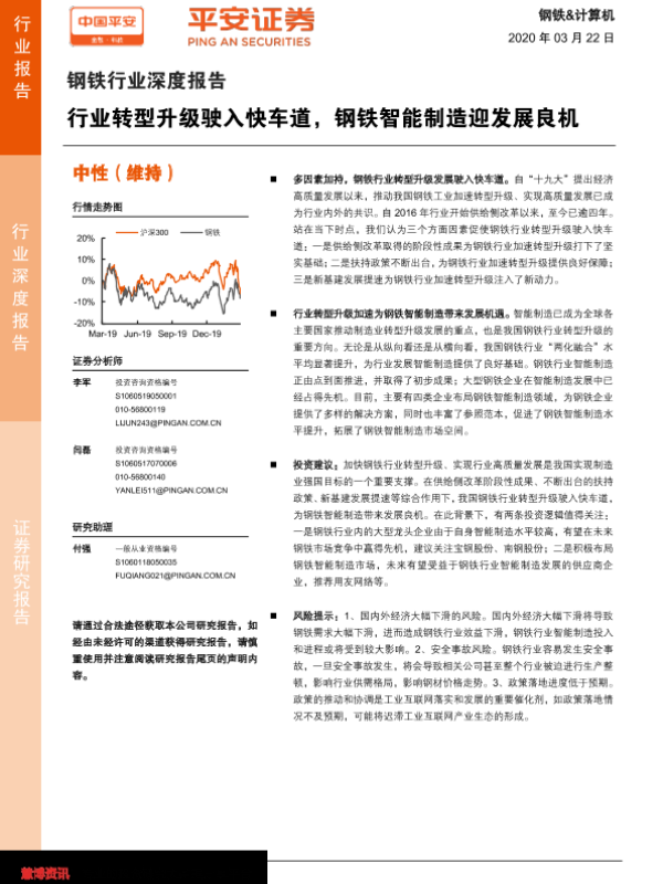 【平安证券】【20200322】钢铁行业深度报告:行业转型升级驶入快车道,钢铁智能制造迎发展良机-21页