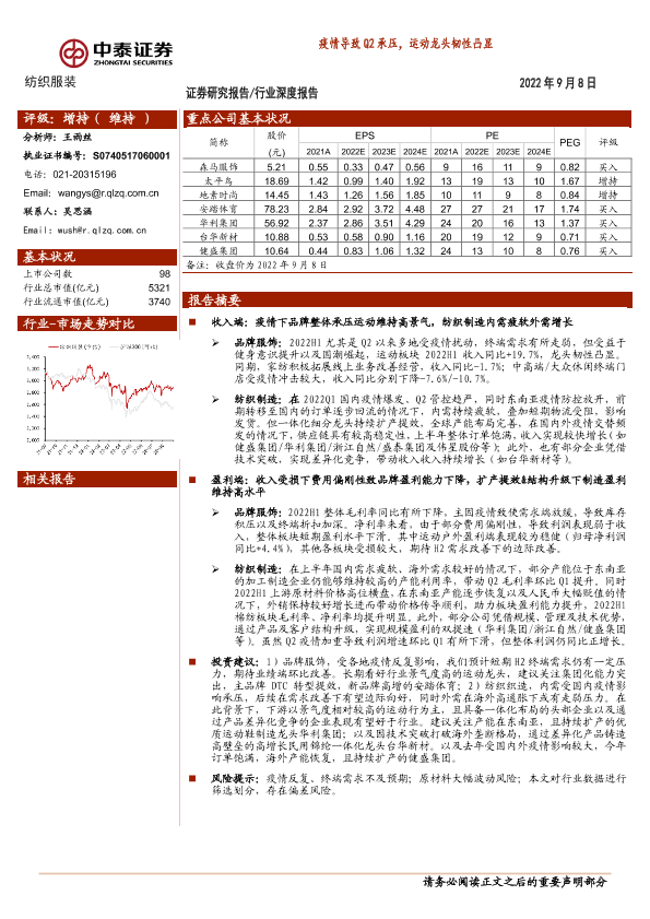 【中泰证券】【20220908】20220908-中泰证券-纺织服装行业深度报告:疫情导致Q2承压,运动龙头韧性凸显-24页