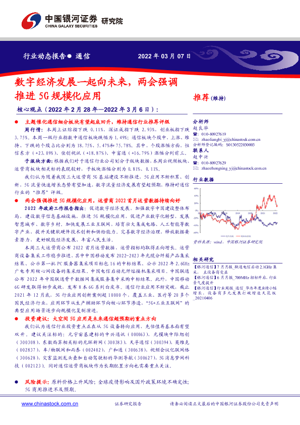 【银河证券】【20220307】通信行业:数字经济发展一起向未来,两会强调推进5G规模化应用-20页