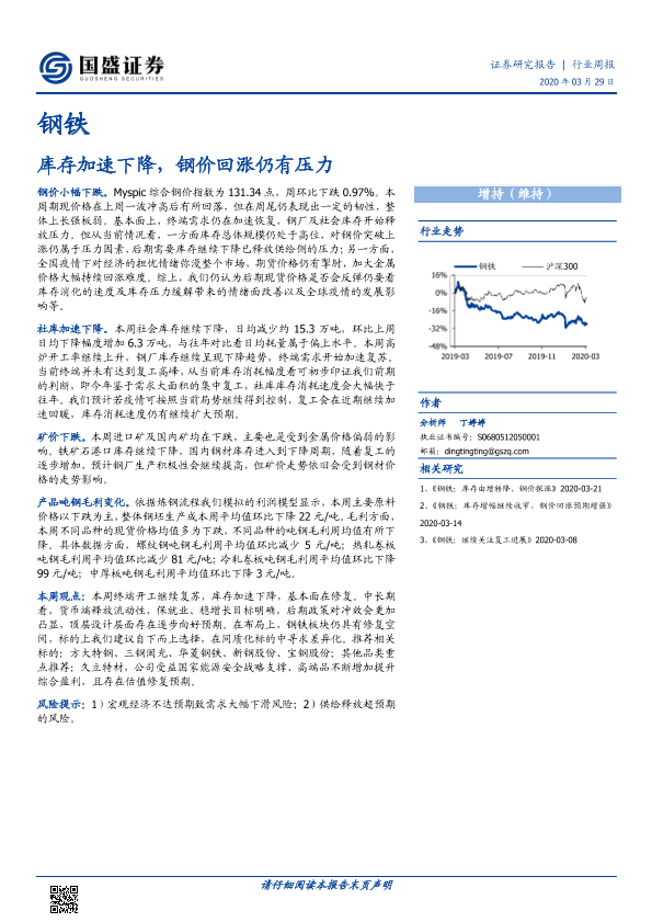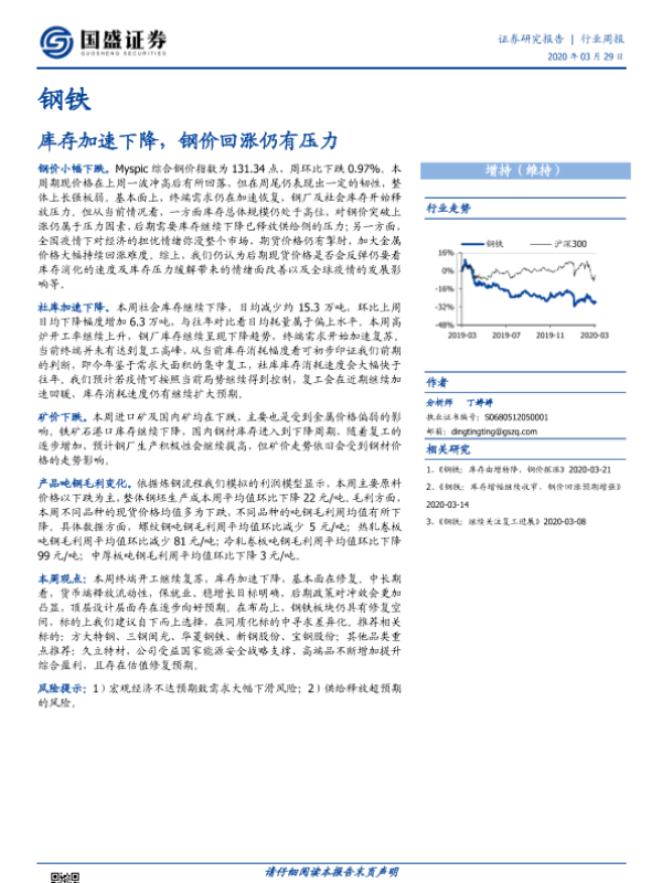 【国盛证券】【20200329】钢铁行业周报:库存加速下降,钢价回涨仍有压力-10页
