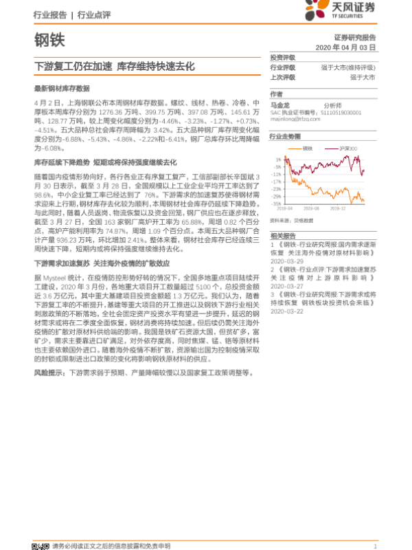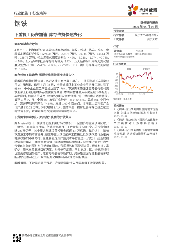 【天风证券】【20200403】钢铁:下游复工仍在加速 库存维持快速去化-3页