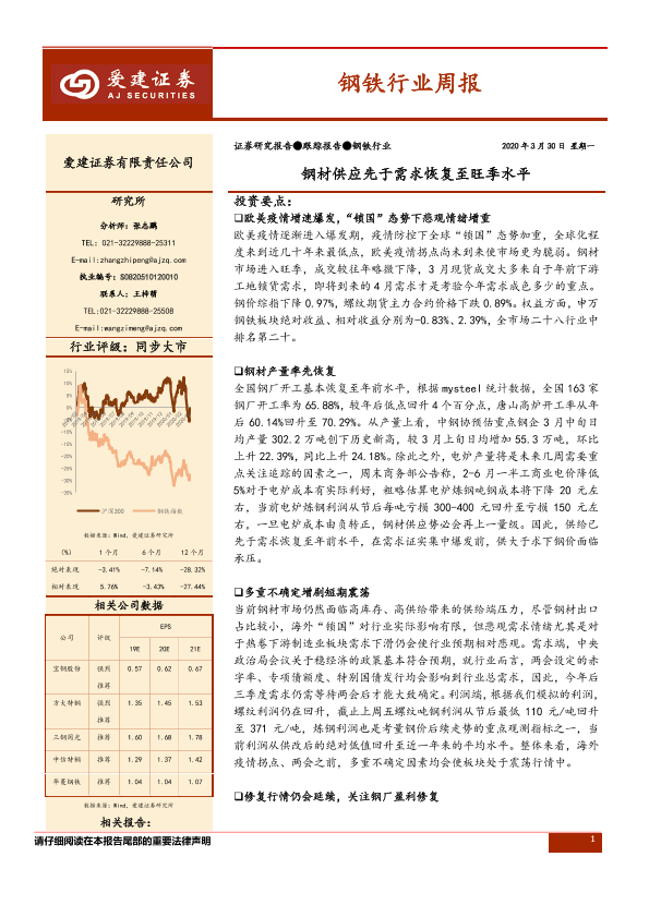 【爱建证券】【20200330】20200330-爱建证券-钢铁行业周报:钢材供应先于需求恢复至旺季水平-24页