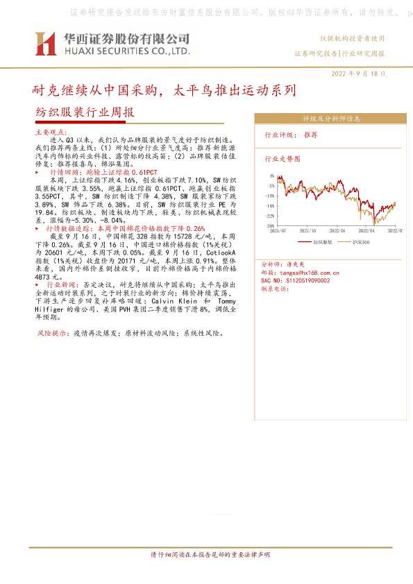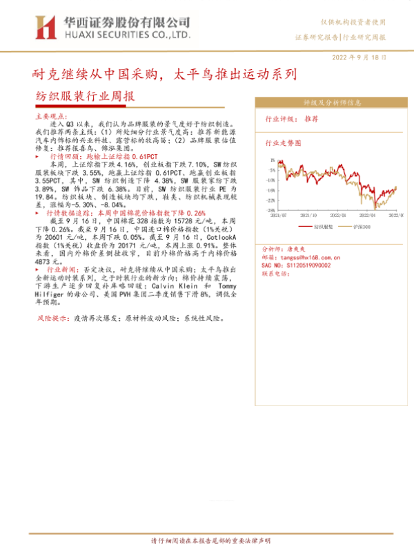 【华西证券】【20220919】纺织服装行业周报:耐克继续从中国采购,太平鸟推出运动系列-24页