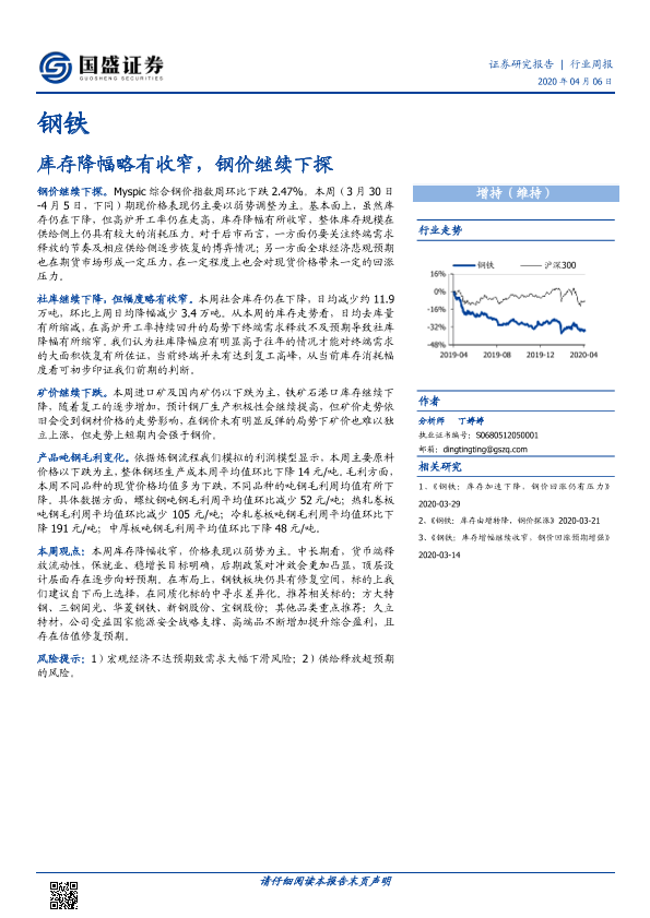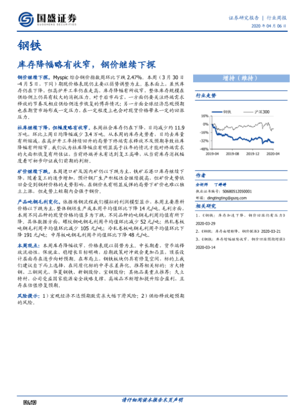 【国盛证券】【20200406】钢铁行业周报:库存降幅略有收窄,钢价继续下探-10页