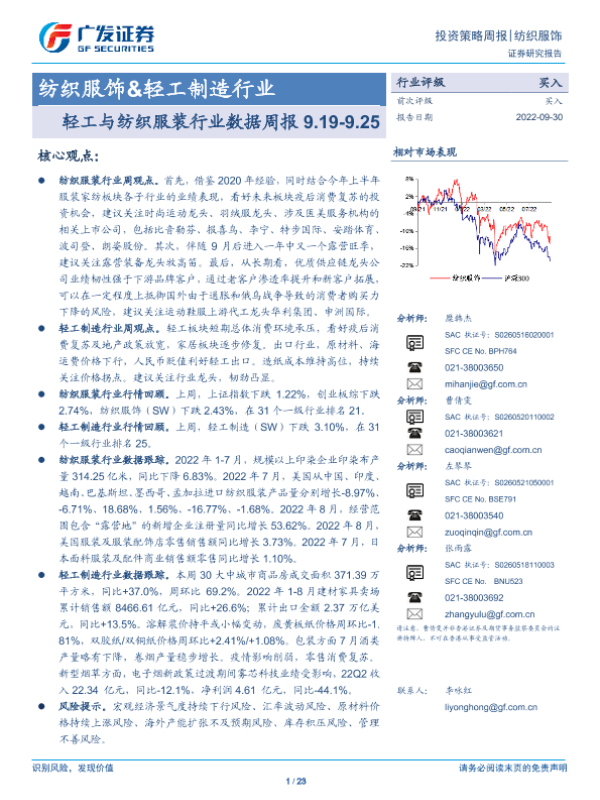 【广发证券】【20220930】轻工与纺织服装行业数据周报-23页