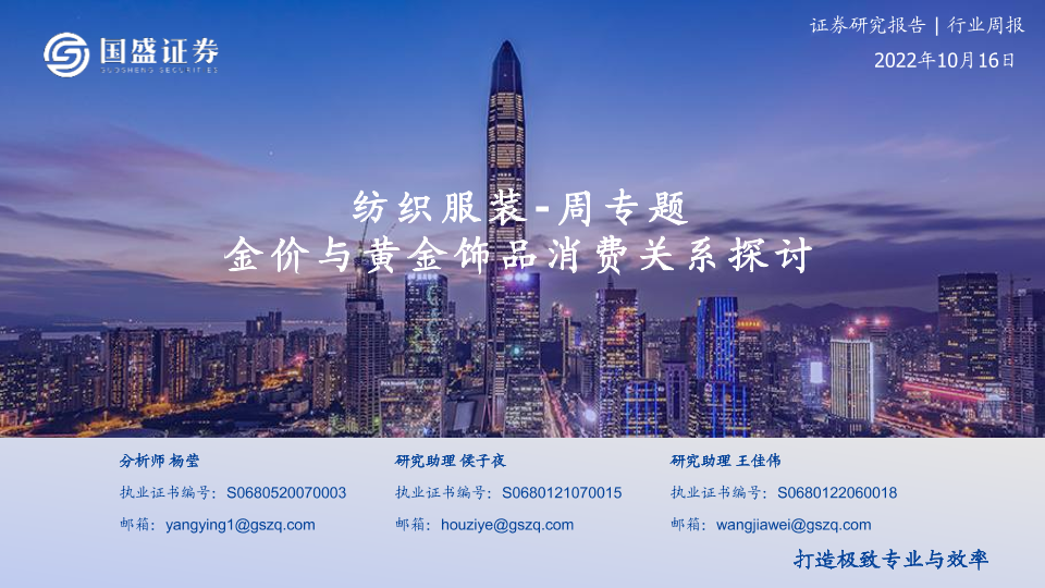 【国盛证券】【20221016】20221016-国盛证券-纺织服装-周专题:金价与黄金饰品消费关系探讨-18页