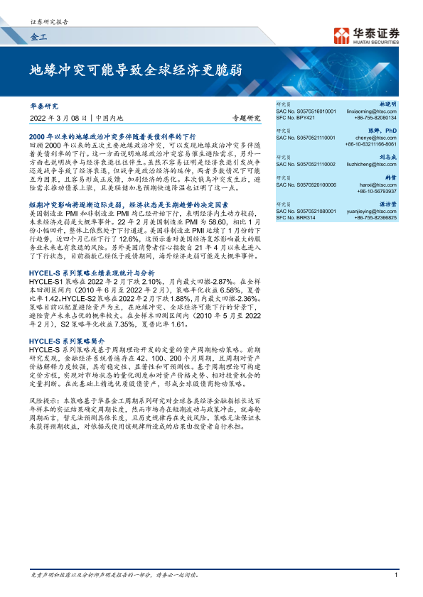 【华泰证券】【20220308】金工专题研究:地缘冲突可能导致全球经济更脆弱-17页