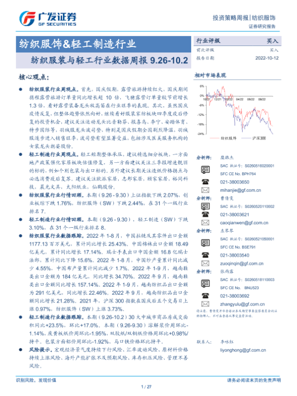 【广发证券】【20221012】20221012-广发证券-纺织服装与轻工行业数据周报-27页