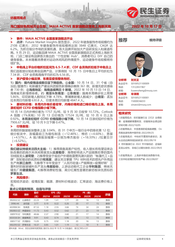 【民生证券】【20221017】纺服周观点:海口国际免税城开业在即,MAIA ACTIVE首家旗舰店落地上海新天地-27页