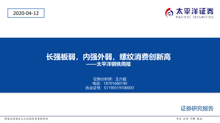 【太平洋证券】【20200412】太平洋钢铁周报:长强板弱,内强外弱,螺纹消费创新高-42页