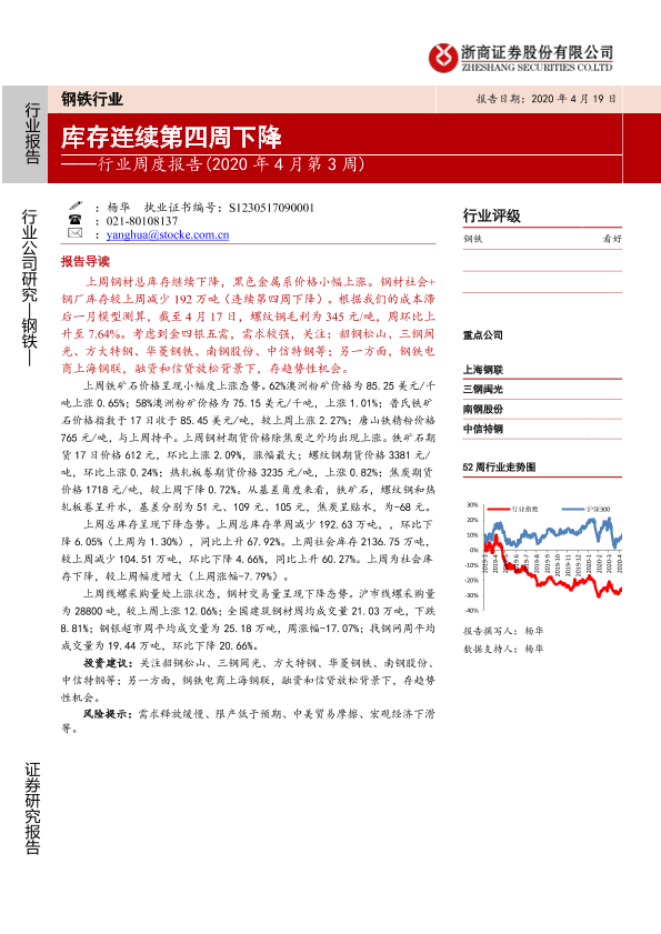 【浙商证券】【20200419】20200419-浙商证券-钢铁行业周度报告(2020年4月第3周):库存连续第四周下降-16页