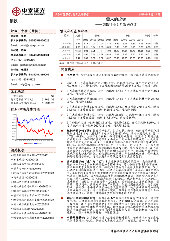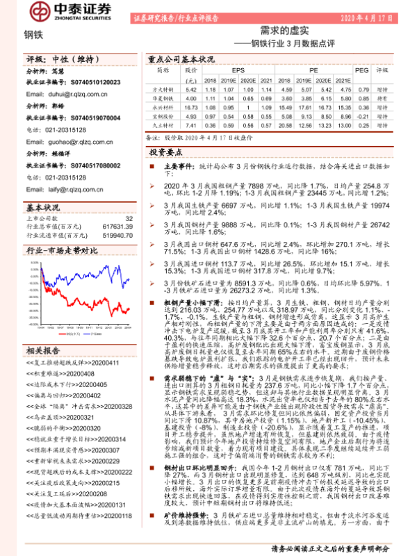 【中泰证券】【20200417】钢铁行业3月数据点评:需求的虚实-5页