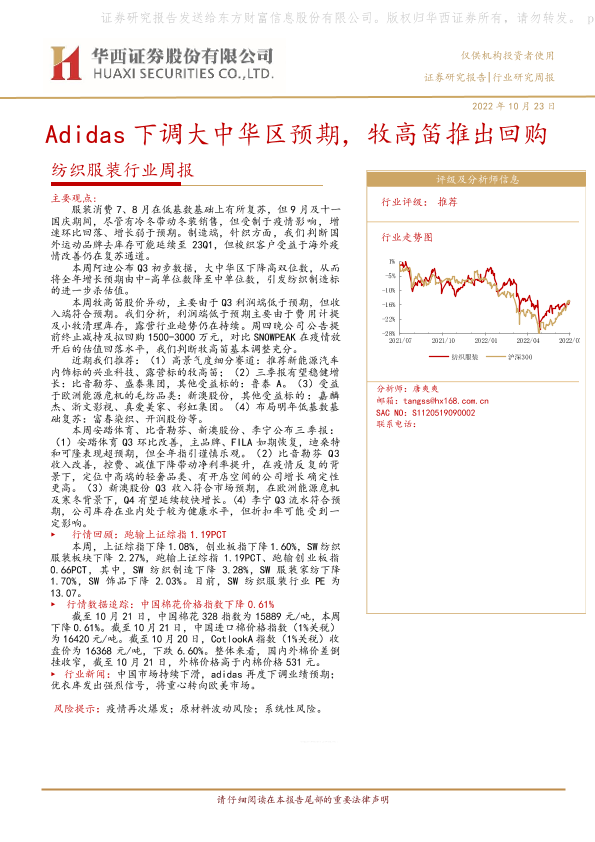 【华西证券】【20221023】20221023-华西证券-纺织服装行业周报:Adidas下调大中华区预期,牧高笛推出回购-19页