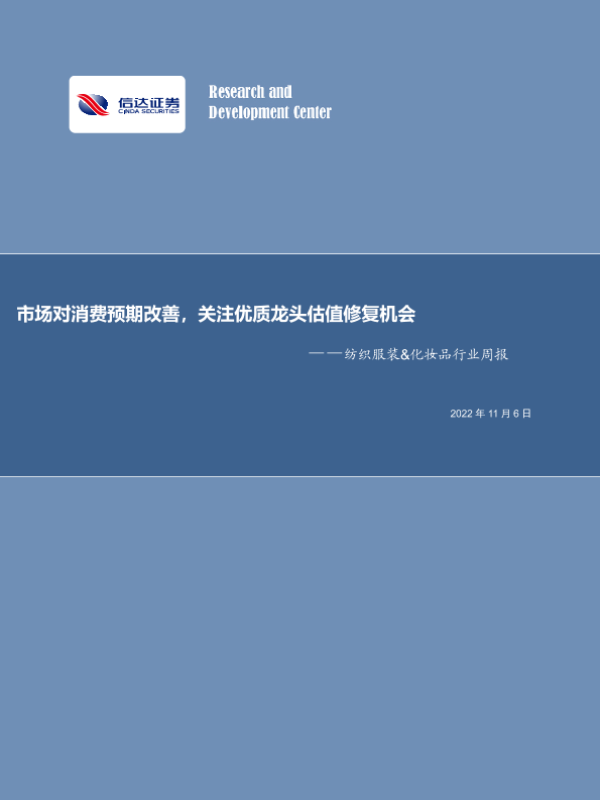 估值修复 化妆品 消费预期 纺织服装 行业周报