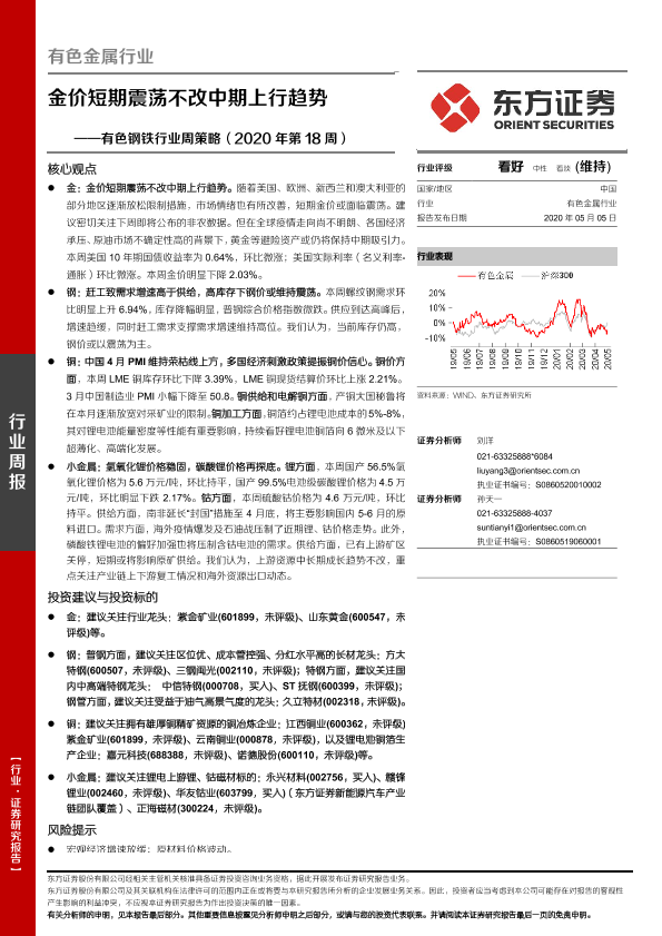 【东方证券】【20200505】20200505-东方证券-有色钢铁行业周策略(2020年第18周):金价短期震荡不改中期上行趋势-26页