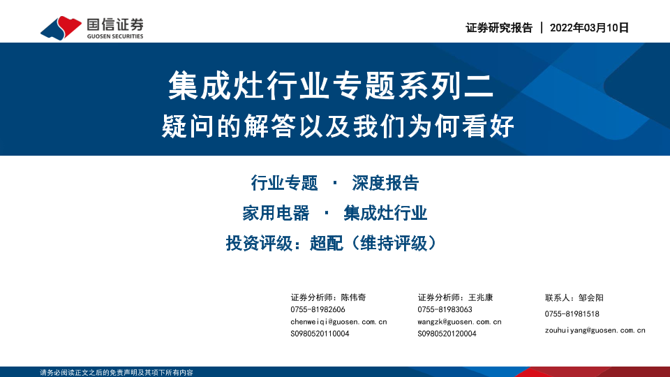 【国信证券】【20220310】集成灶行业专题系列二:疑问的解答以及我们为何看好-30页