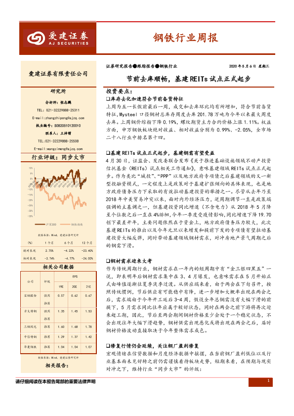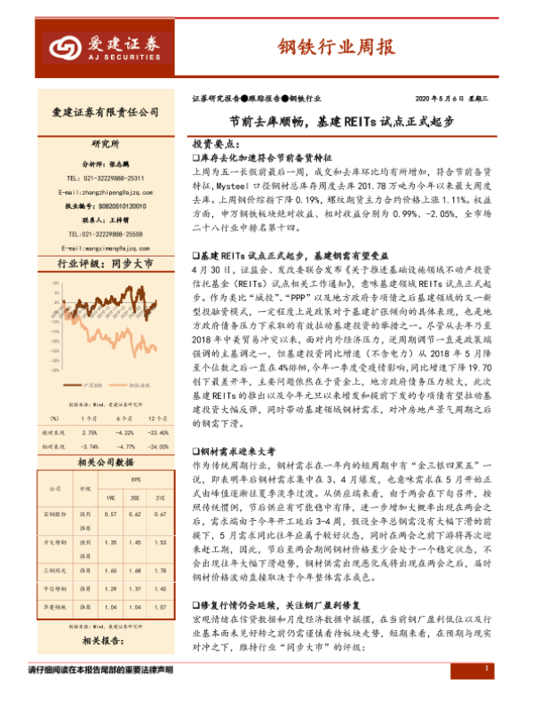 【爱建证券】【20200506】20200506-爱建证券-钢铁行业周报:节前去库顺畅,基建REITs试点正式起步-25页