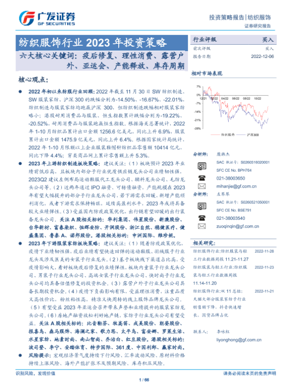 【广发证券】【20221206】纺织服饰行业2023年投资策略:六大核心关键词:疫后修复、理性消费、露营户外、亚运会、产能释放、库存周期-66页