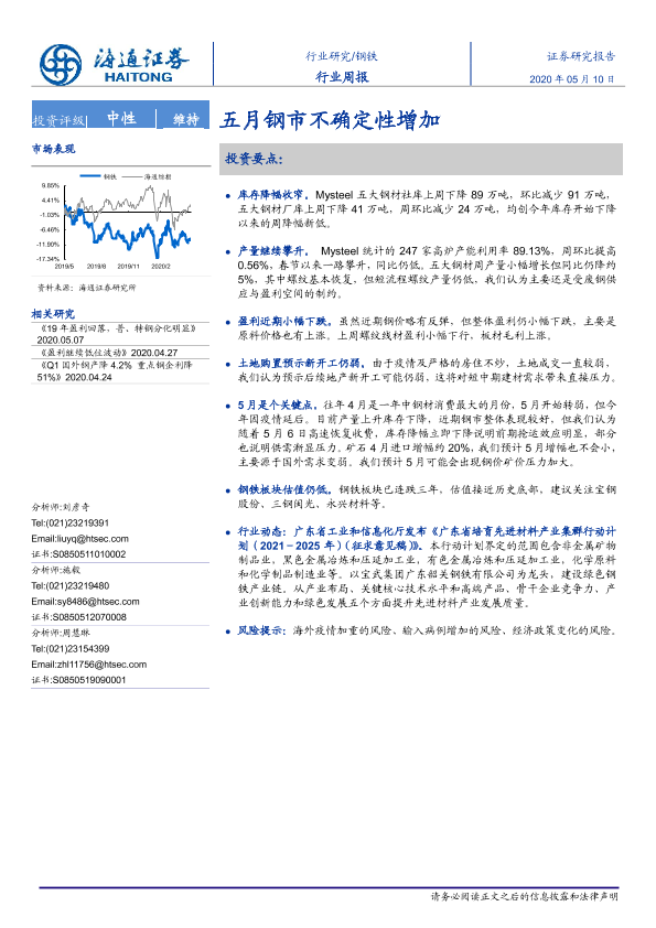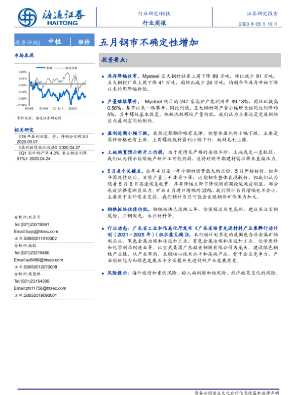 【海通证券】【20200510】20200510-海通证券-钢铁行业周报:五月钢市不确定性增加-13页