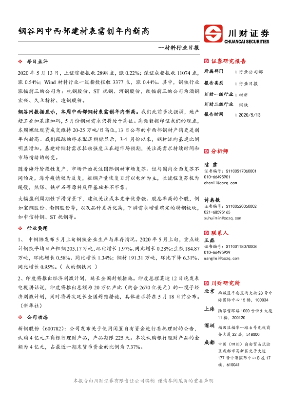 【川财证券】【20200513】钢谷网中西部建材表需创年内新高-3页