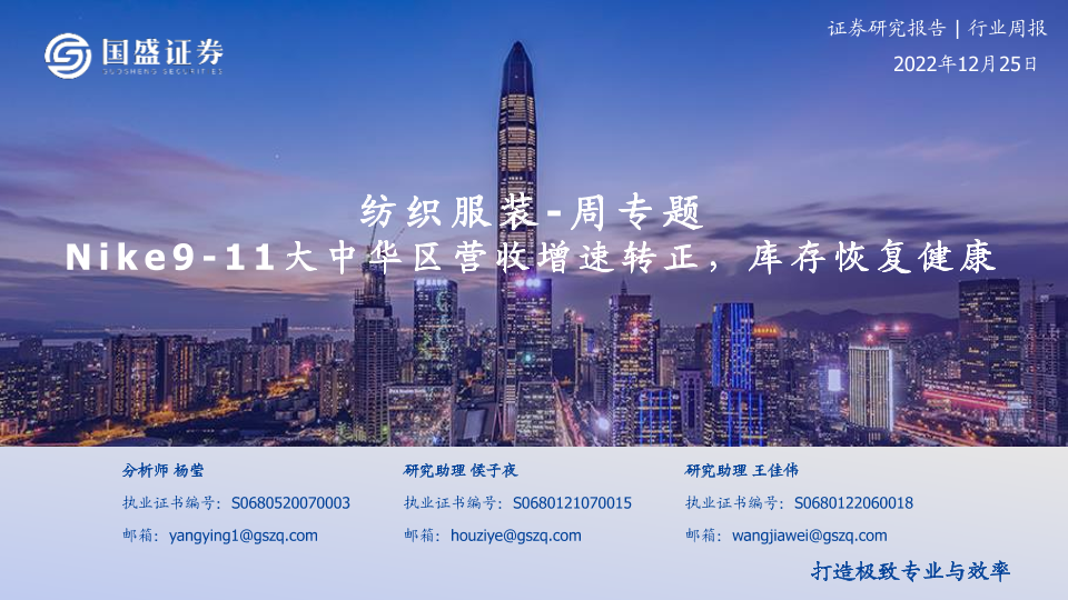 【国盛证券】【20221225】20221225-国盛证券-纺织服装-周专题:Nike9-11大中华区营收增速转正,库存恢复健康-16页