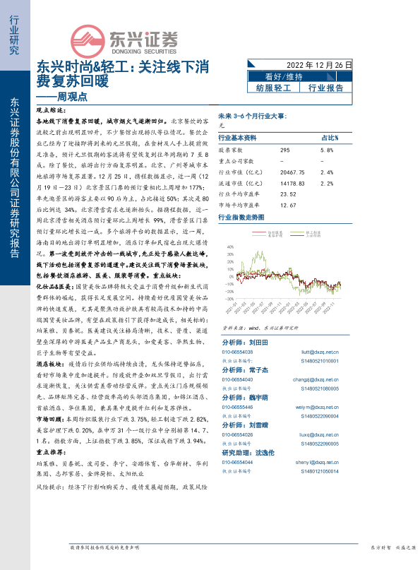 【东兴证券】【20221226】东兴时尚&轻工周观点:关注线下消费复苏回暖-15页