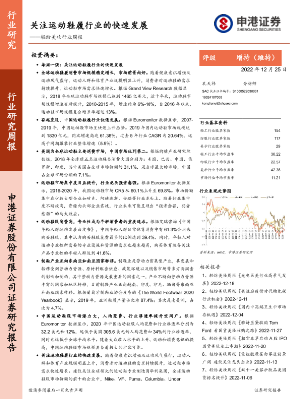 【申港证券】【20221225】20221225-申港证券-轻纺美妆行业周报:关注运动鞋履行业的快速发展-16页