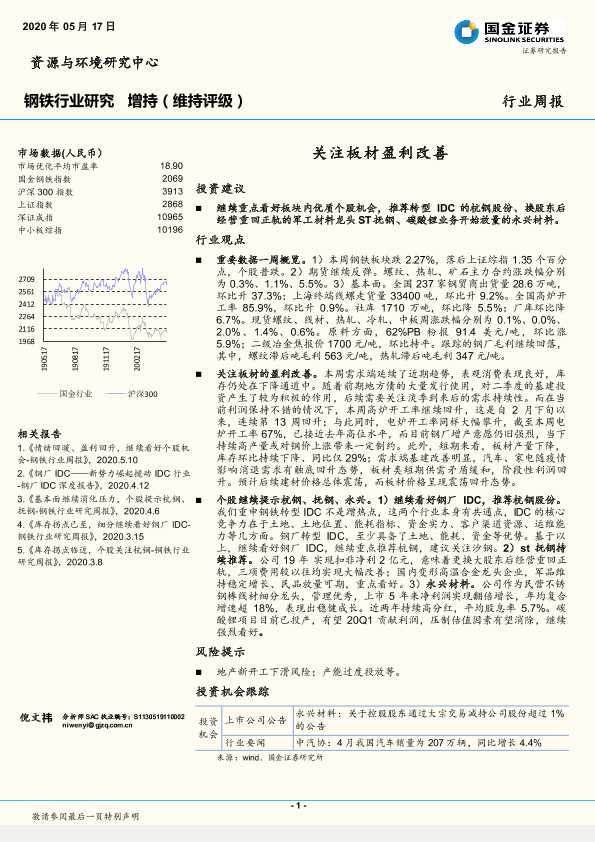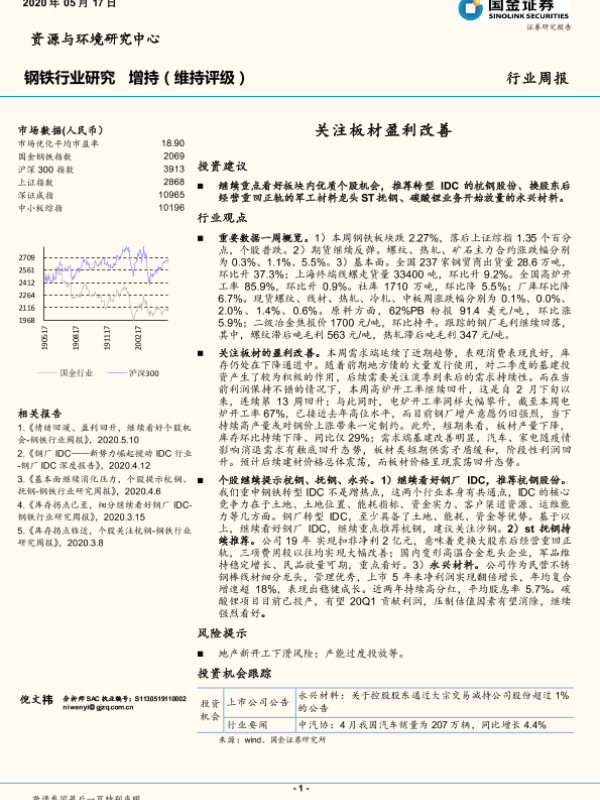 【国金证券】【20200517】20200517-国金证券-钢铁行业研究:关注板材盈利改善-10页