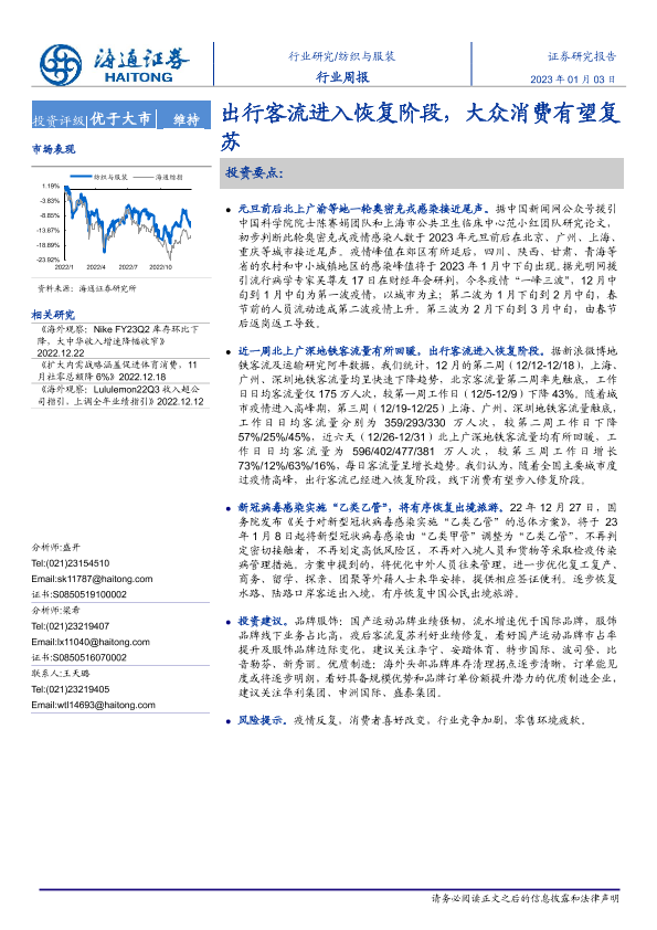 【海通证券】【20230103】20230103-海通证券-纺织与服装行业周报:出行客流进入恢复阶段,大众消费有望复苏-11页