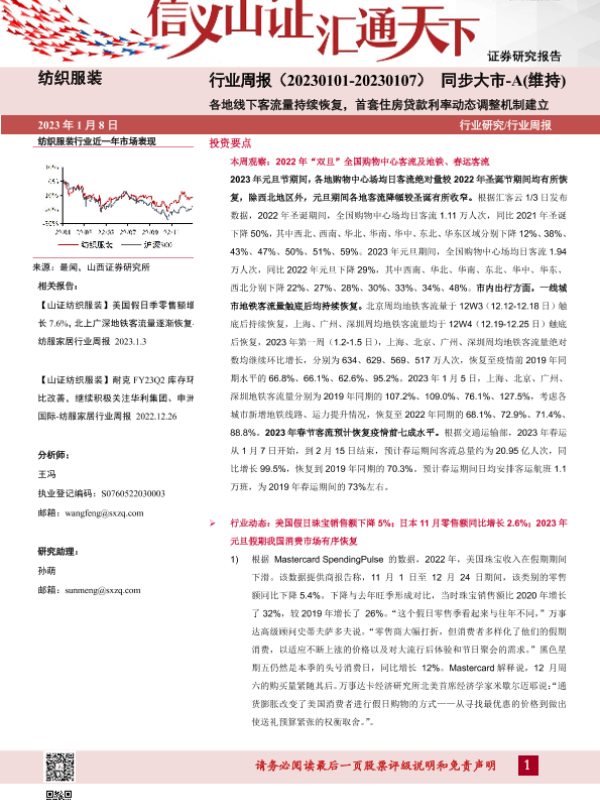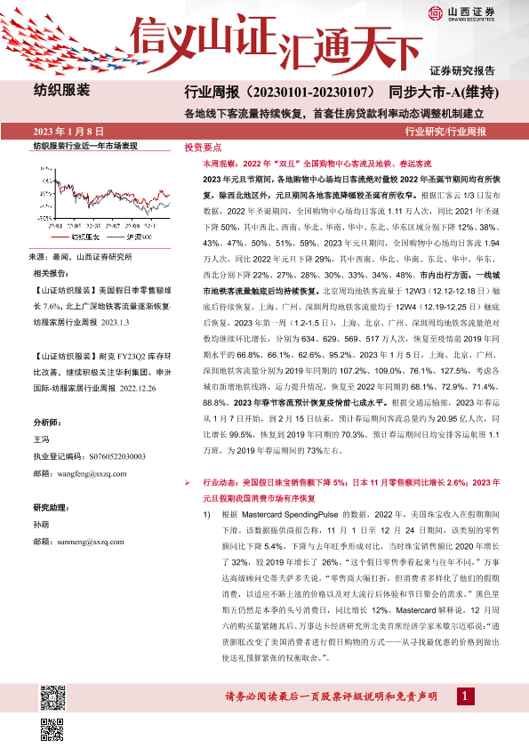 【山西证券】【20230108】纺织服装行业周报:各地线下客流量持续恢复,首套住房贷款利率动态调整机制建立-23页