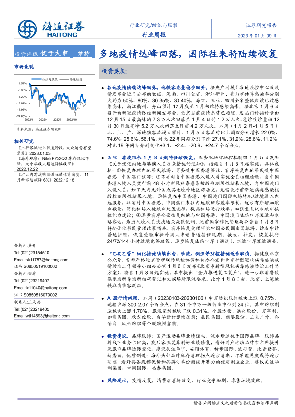 【海通证券】【20230109】20230109-海通证券-纺织与服装行业周报:多地疫情达峰回落,国际往来将陆续恢复-11页