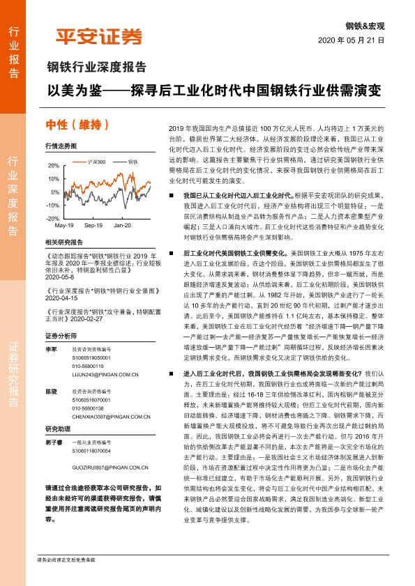 【平安证券】【20200521】20200521-平安证券-钢铁行业深度报告:以美为鉴——探寻后工业化时代中国钢铁行业供需演变-21页