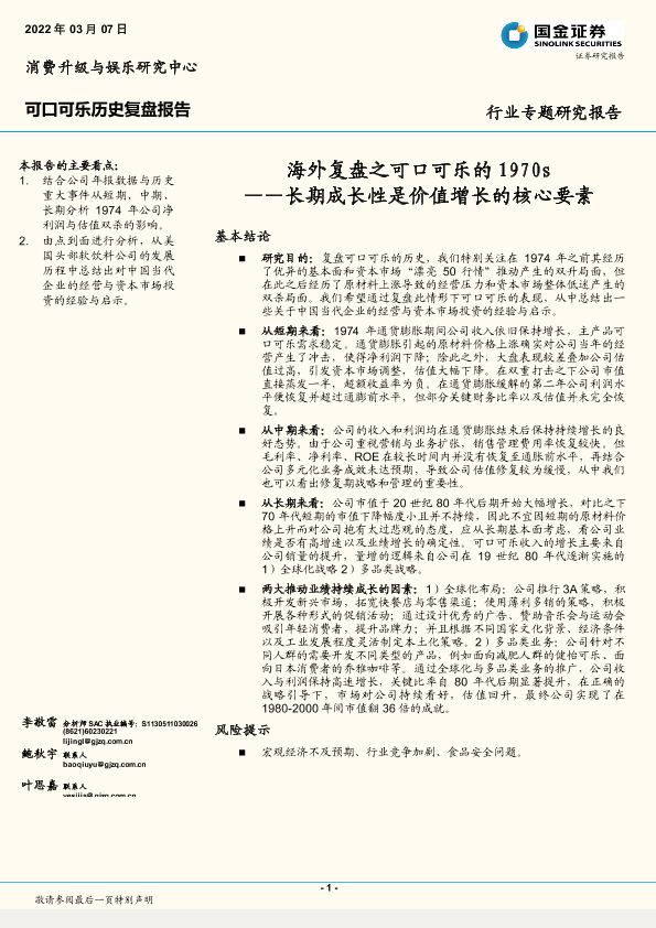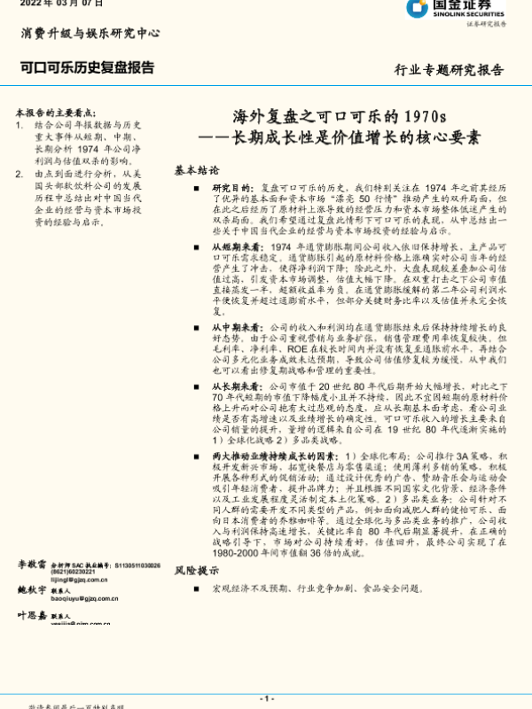 【国金证券】【20220307】食品饮料行业:海外复盘之可口可乐的1970s,长期成长性是价值增长的核心要素-16页