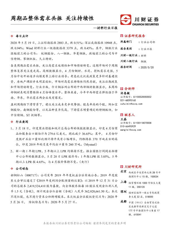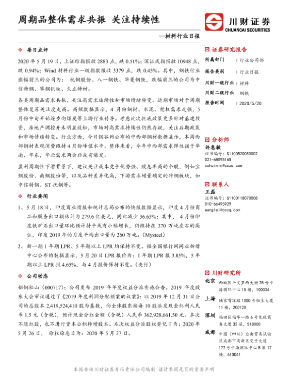 【川财证券】【20200520】材料行业日报:周期品整体需求共振 关注持续性-3页