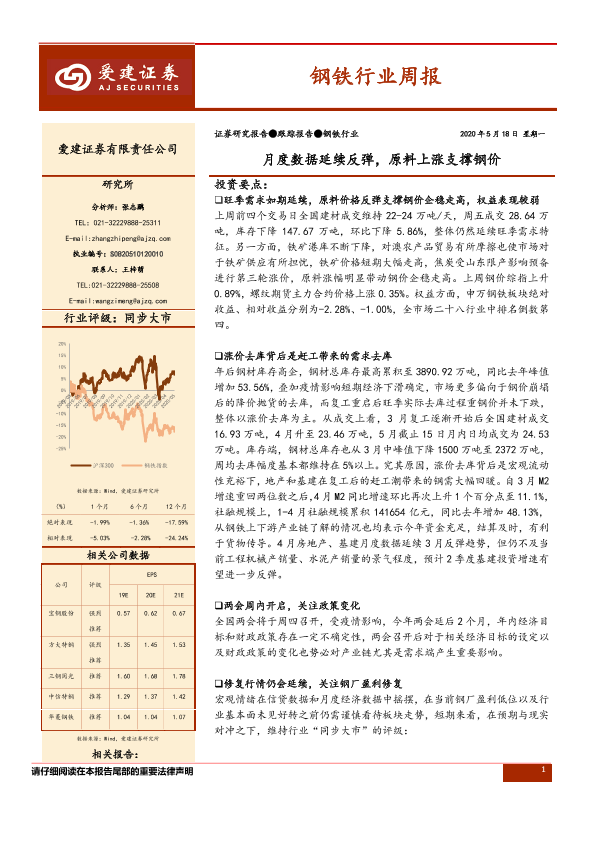 【爱建证券】【20200518】20200518-爱建证券-钢铁行业周报:月度数据延续反弹,原料上涨支撑钢价-24页
