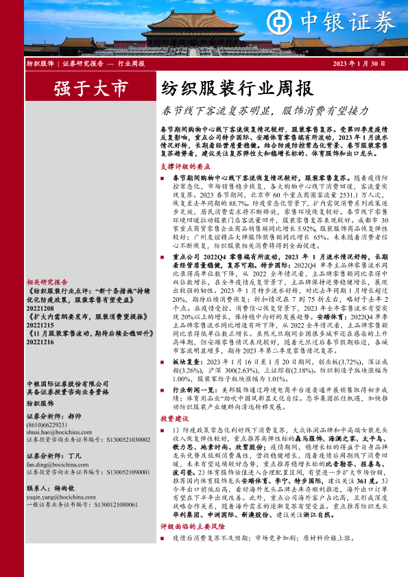 【中银证券】【20230130】20230130-中银证券-纺织服装行业周报:春节线下客流复苏明显,服饰消费有望接力-18页