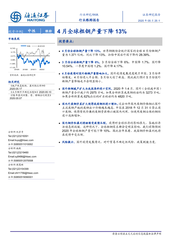【海通证券】【20200525】20200525-海通证券-钢铁行业跟踪报告:4月全球粗钢产量下降13%-4页