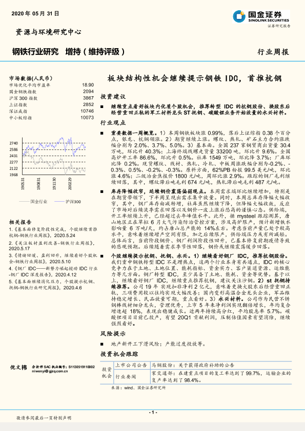 【国金证券】【20200531】20200531-国金证券-钢铁行业研究:板块结构性机会继续提示钢铁IDC,首推杭钢-10页