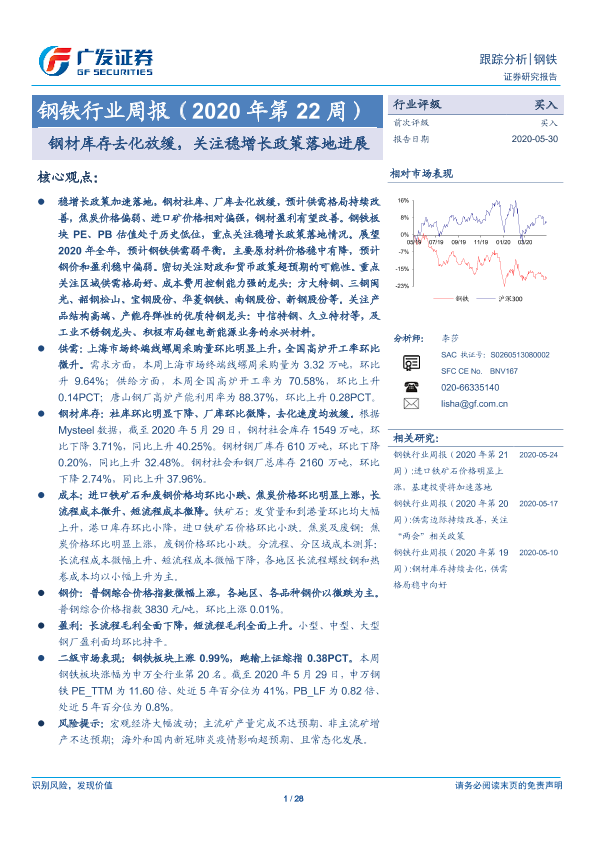 【广发证券】【20200530】20200530-广发证券-钢铁行业周报(2020年第22周):钢材库存去化放缓,关注稳增长政策落地进展-28页