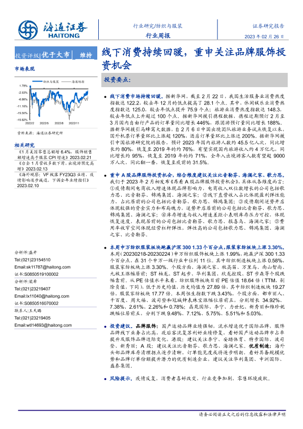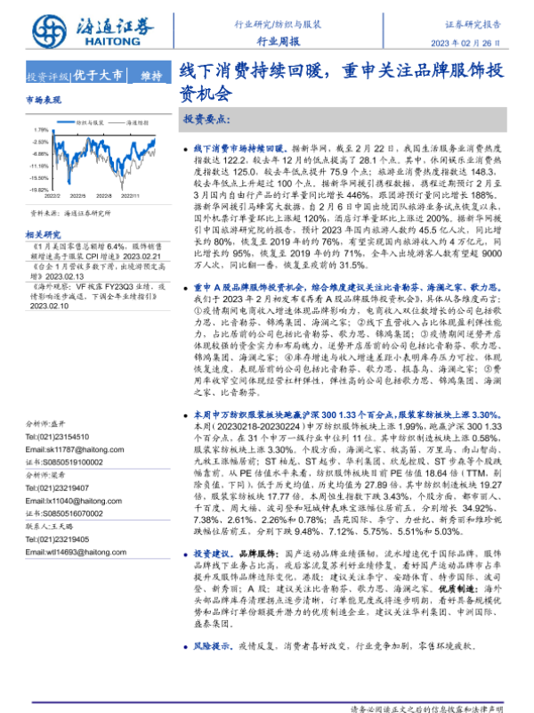 【海通证券】【20230226】20230226-海通证券-纺织与服装行业周报:线下消费持续回暖,重申关注品牌服饰投资机会-11页