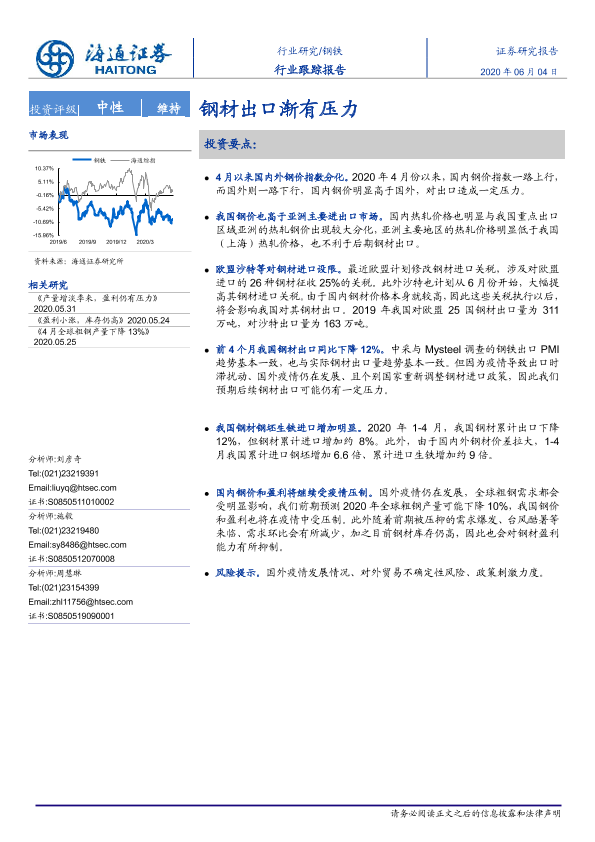 【海通证券】【20200604】20200604-海通证券-钢铁行业跟踪报告:钢材出口渐有压力-5页