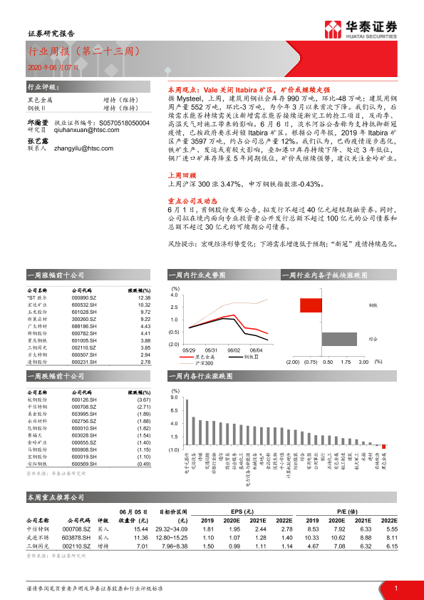 【华泰证券】【20200607】20200607-华泰证券-黑色金属行业周报(第二十三周)-22页