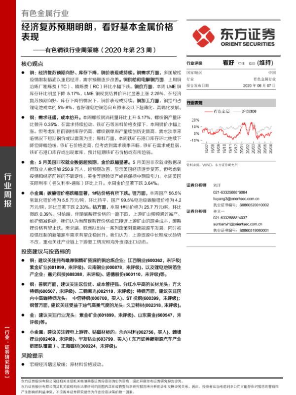【东方证券】【20200607】20200607-东方证券-有色钢铁行业周策略(2020年第23周):经济复苏预期明朗,看好基本金属价格表现-25页
