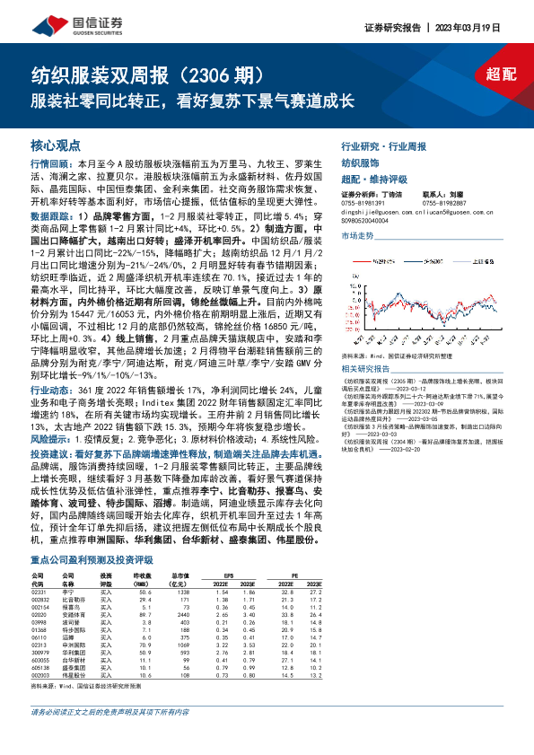 【国信证券】【20230319】20230319-国信证券-纺织服装双周报(2306期):服装社零同比转正,看好复苏下景气赛道成长-13页