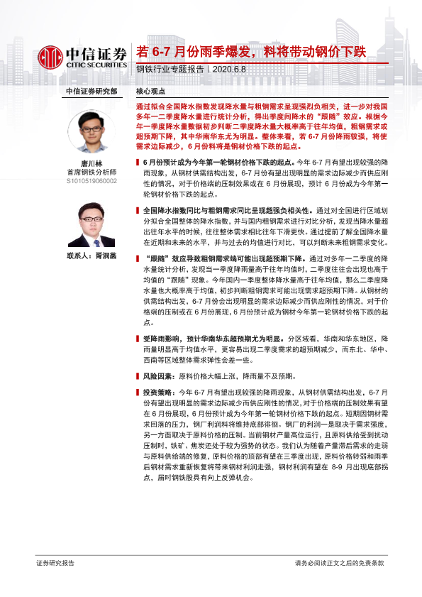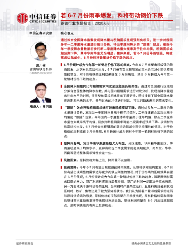 【中信证券】【20200608】若6-7月份雨季爆发,料将带动钢价下跌-8页