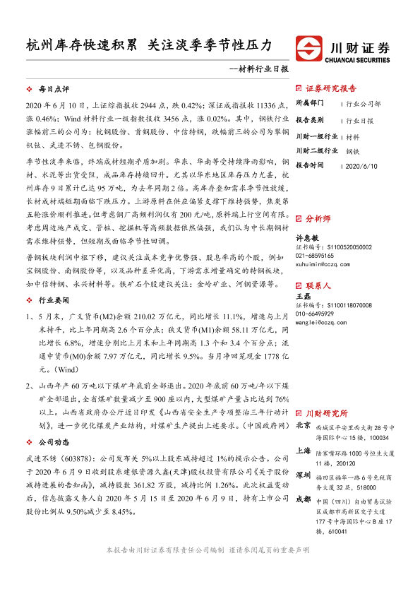 【川财证券】【20200610】材料行业日报:杭州库存快速积累 关注淡季季节性压力-3页